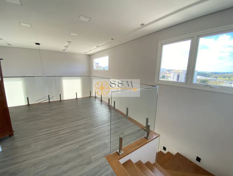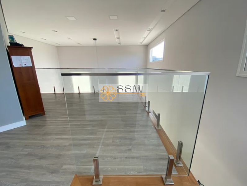 - Mezanino e escada com guarda corpo de vidro.