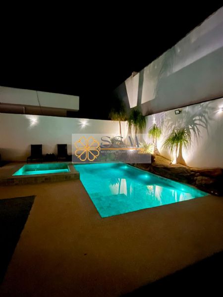 * Piscina aquecida com prainha, hidromassagem, iluminação e 2 cascatas em pedras