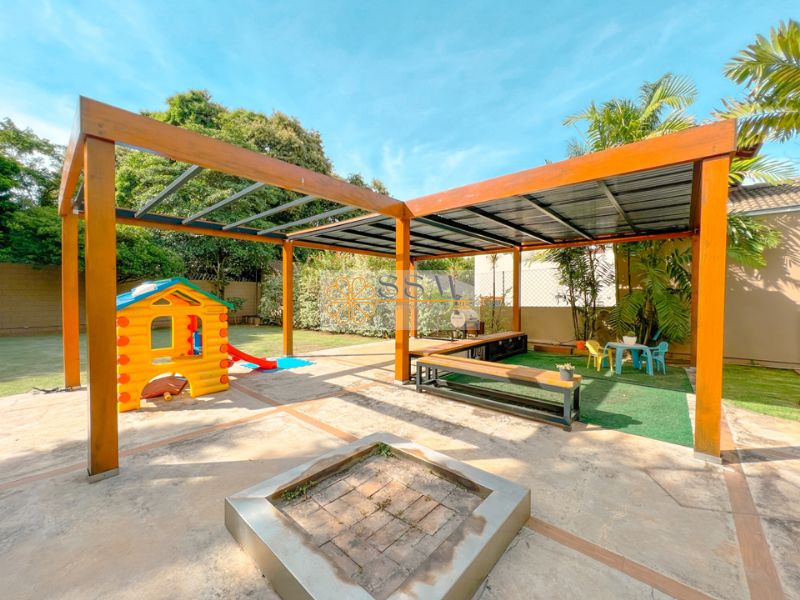 Amplo jardim com playground