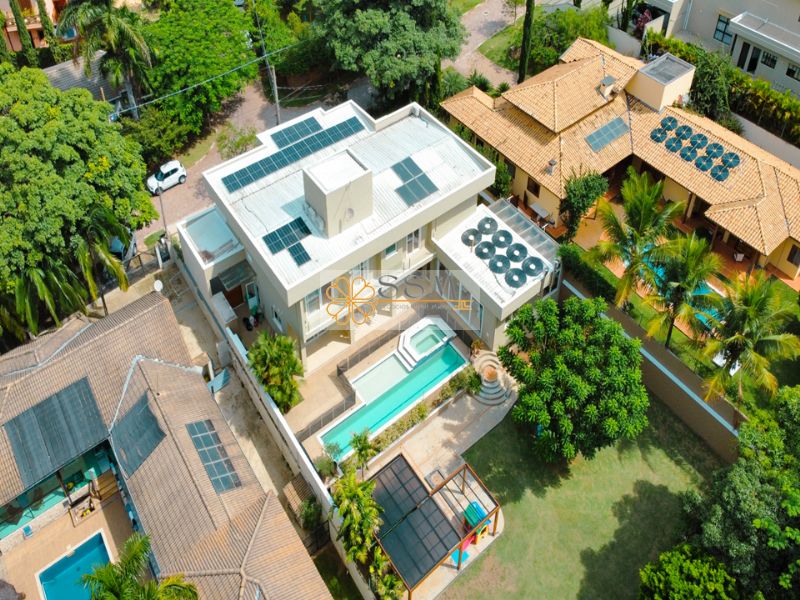 Piscina com aquecimento solar e infraestrutura para aquecimento a gás