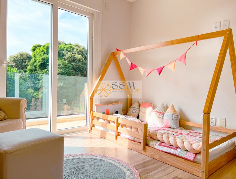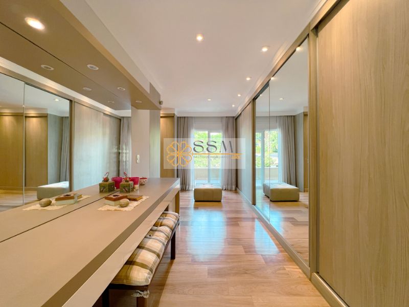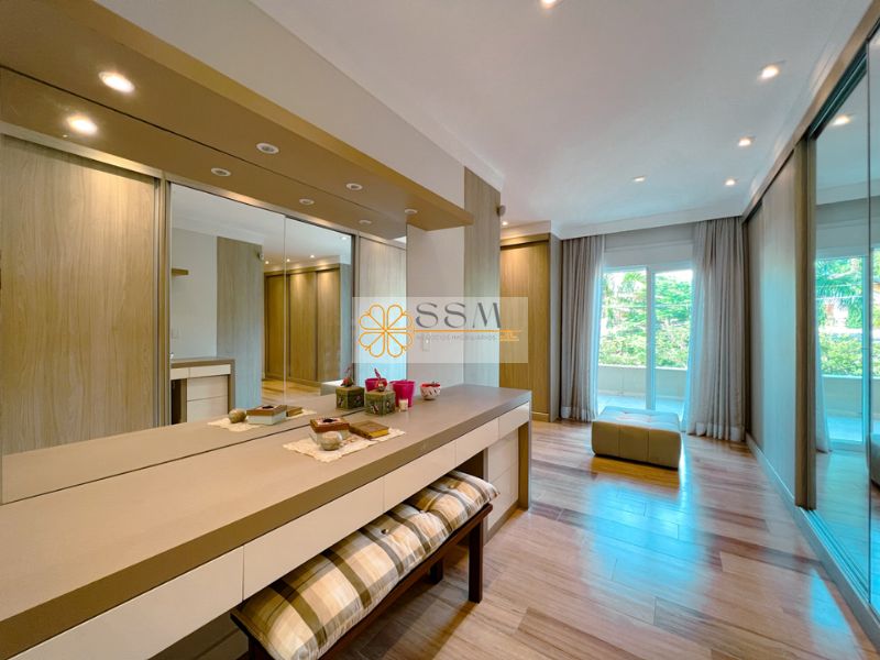 Dos outros 4 quartos, 3 possuem varanda e ar condicionado (sendo 1 deles com armários) e se dividem em 2 suítes americanas